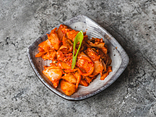 Spicy Jokbal The finished Jokbal is sliced into pieces and cooked again with spicy seasoning. Served with onion pickles, bean paste, and lettuce.